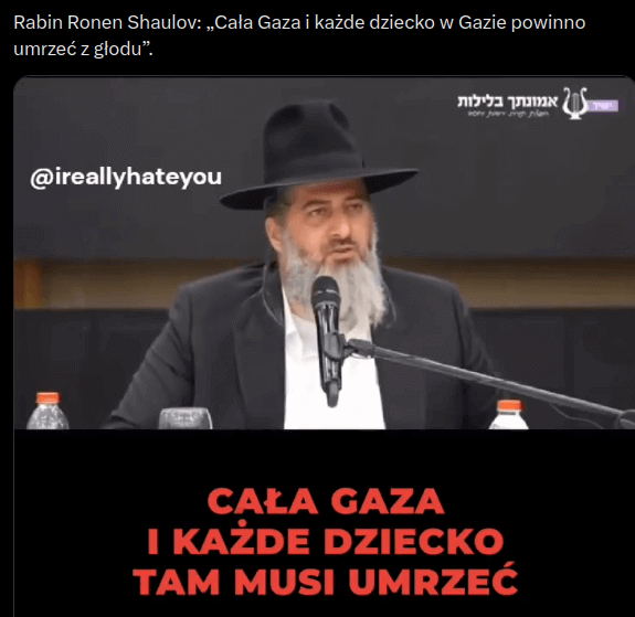 https://slonecznystok.pl/informacje/bialystok/polak-oskarzony-i-skazany-za-postawienie-pytania-jak-podlym-narodem-trzeba-byc-by-zasluzyc-na-taki-los.html w którym wystąpiłem w obronie białostoczanina Jacka Porosy, bezpodstawnie oskarżonego o niezaistniałe i niepopełnione w rzeczywistości przestępstwo oraz skrytykowałem ideologię talmudyczną nazywając ją zbrodniczą i wskazując, że w mojej ocenie jest bezpośrednią przyczyną ludobójstwa i zbrodni na Palestyńczykach dokonywanych przez żydowski reżim w Strefie Gazy. Zacytowałem też wypowiedź zmarłego rabina sekty Chabad Lubawicz, który ich system polityczny nazywał "superfaszyzmem", a o którym ostatnio zrobiło się głośno w procesie Grzegorza Brauna: https://slonecznystok.pl/polityka/kraj/transkrypcja-zeznania-brauna.html