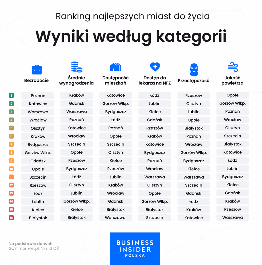 W rankingu opublikowanym przez ocden.eu Białystok plasuje się na ostatnim 16. miejscu w bezrobociu i wynagrodzeniach. Równie źle wygląda sytuacja w mieszkalnictwie: Białystok zajął przedostatnie 15. miejsce. Łatwego życia w Białymstoku nie mają też chorzy i emeryci. Stolica Podlasia jest przedostatnia w dostępie do lekarza na NFZ. Lepiej jest z jakością powietrza - pozycja 7 i przestępczością - pozycja 5.