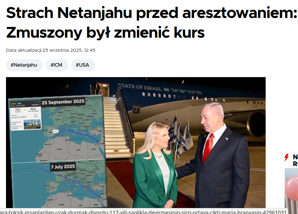 Izraelskie media poinformowały, że samolot poleciał tą trasą, ponieważ Międzynarodowy Trybunał Karny wydał nakaz aresztowania Netanjahu.