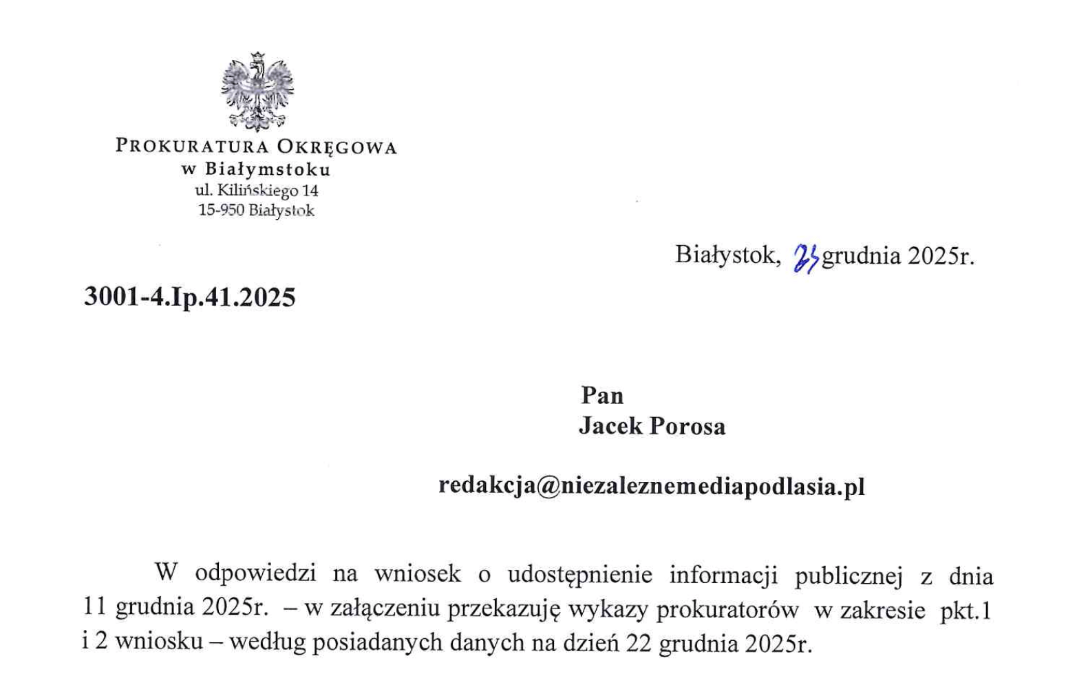 Z otrzymanych informacji wynika, że sędzia Alina D. nie jest już sędzią Sądu Rejonowego w Białymstoku.
