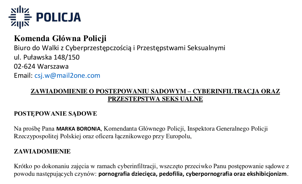Poniżej do pobrania plik pdf z przykładem zuchwałego podszywania się pod policję w celu popełnienia przestępstwa.