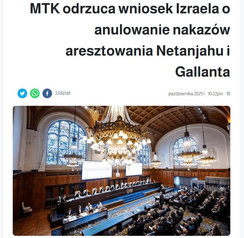 Działając w interesie publicznym przedrukowujemy informacje z portalu alqaheranews.net nt. decyzji MTK w sprawie Netanjahu i Galanta. Działająca w Polsce propaganda przemilcza niewygodne fakty i rozpowszechnia kłamliwą narrację, że to żydzi i Izrael jest ofiarą wojny w Strefie Gazy.
