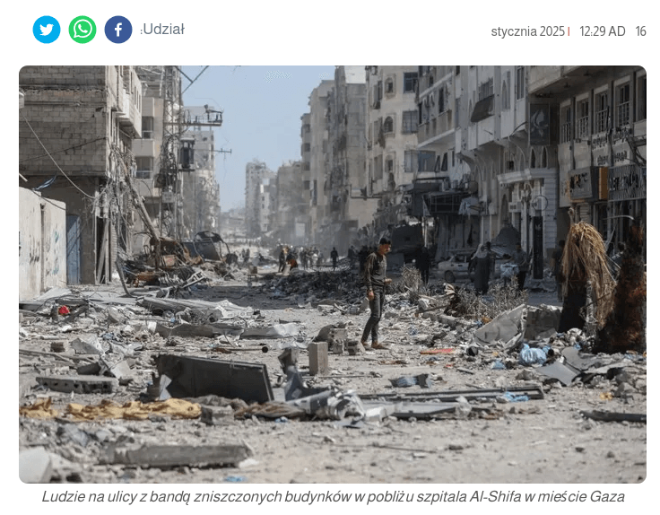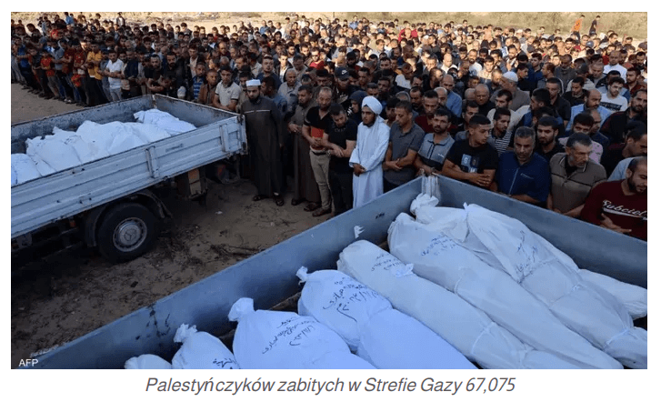 Od 7 października 2023 r. izraelskie siły okupacyjne dokonały zbrodni ludobójstwa w Strefie Gazy, zabijając ponad 67.869, raniąc ponad 170 tys. innych, w większości dzieci i kobiety. Głód pochłonął życie 463 Palestyńczyków, w tym 157 dzieci.