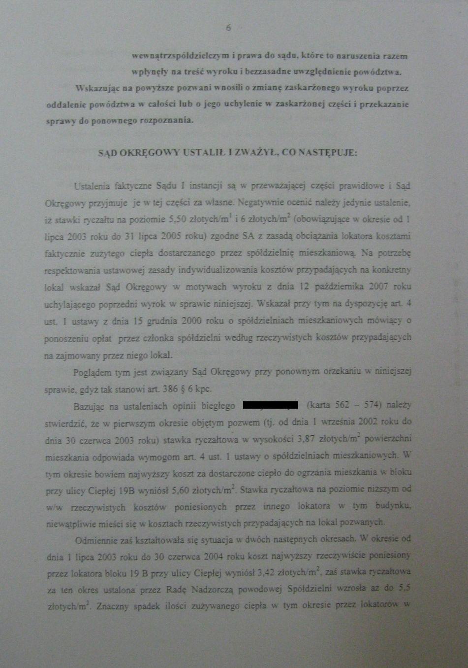 W białostockim Sądzie Okręgowym zapadł bardzo ważny wyrok w sprawie zasad rozliczania ogrzewania. Spółdzielca został pozwany przez zarząd BSM za kwestionowanie wielkości opłaty ryczałtowej ustalonej przez spółdzielnię oraz kwestionowanie systemu rozliczania w oparciu podzielniki ciepła. Sąd Okręgowy zmienił wyrok Sądu Rejonowego i wydał korzystne orzeczenie w kwestii zasady naliczania opłaty ryczałtowej.